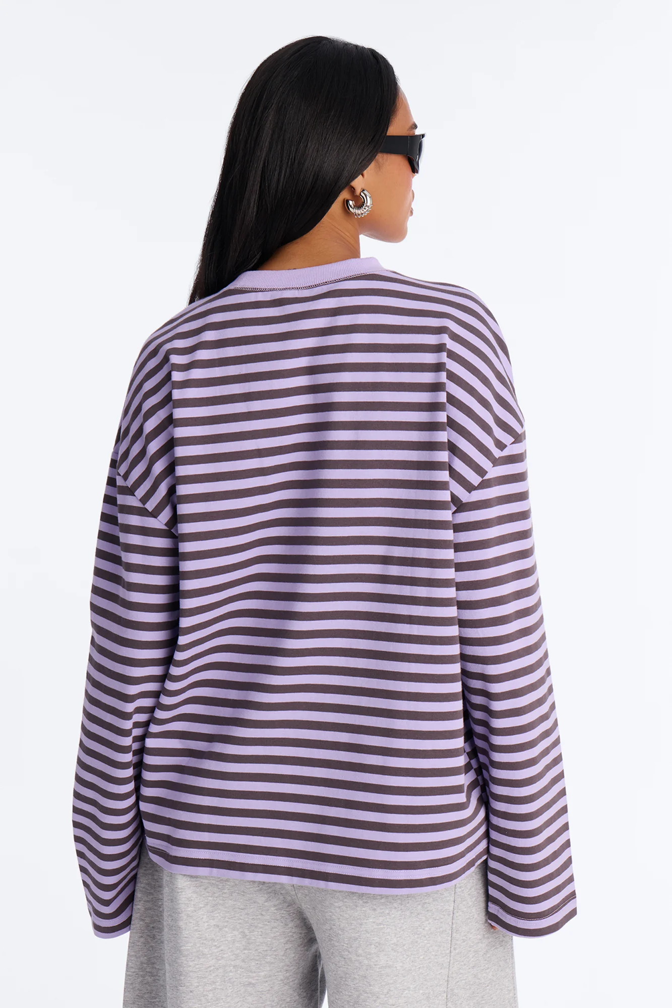 Alyssa Striped Oversized Long Sleeve Top - Lavender/combo