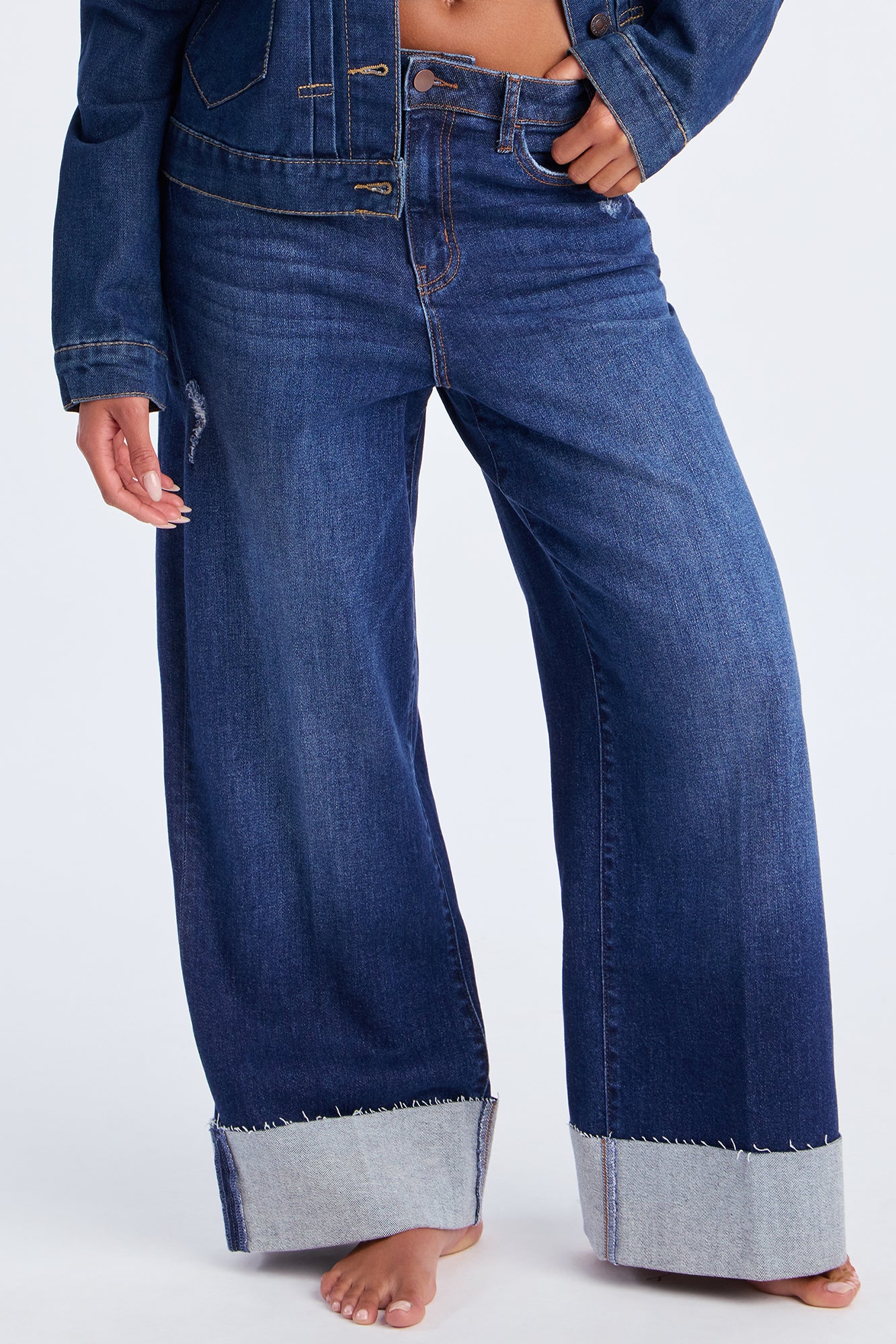 Big Deal Cuffed Wide Leg Jeans - Dark Wash