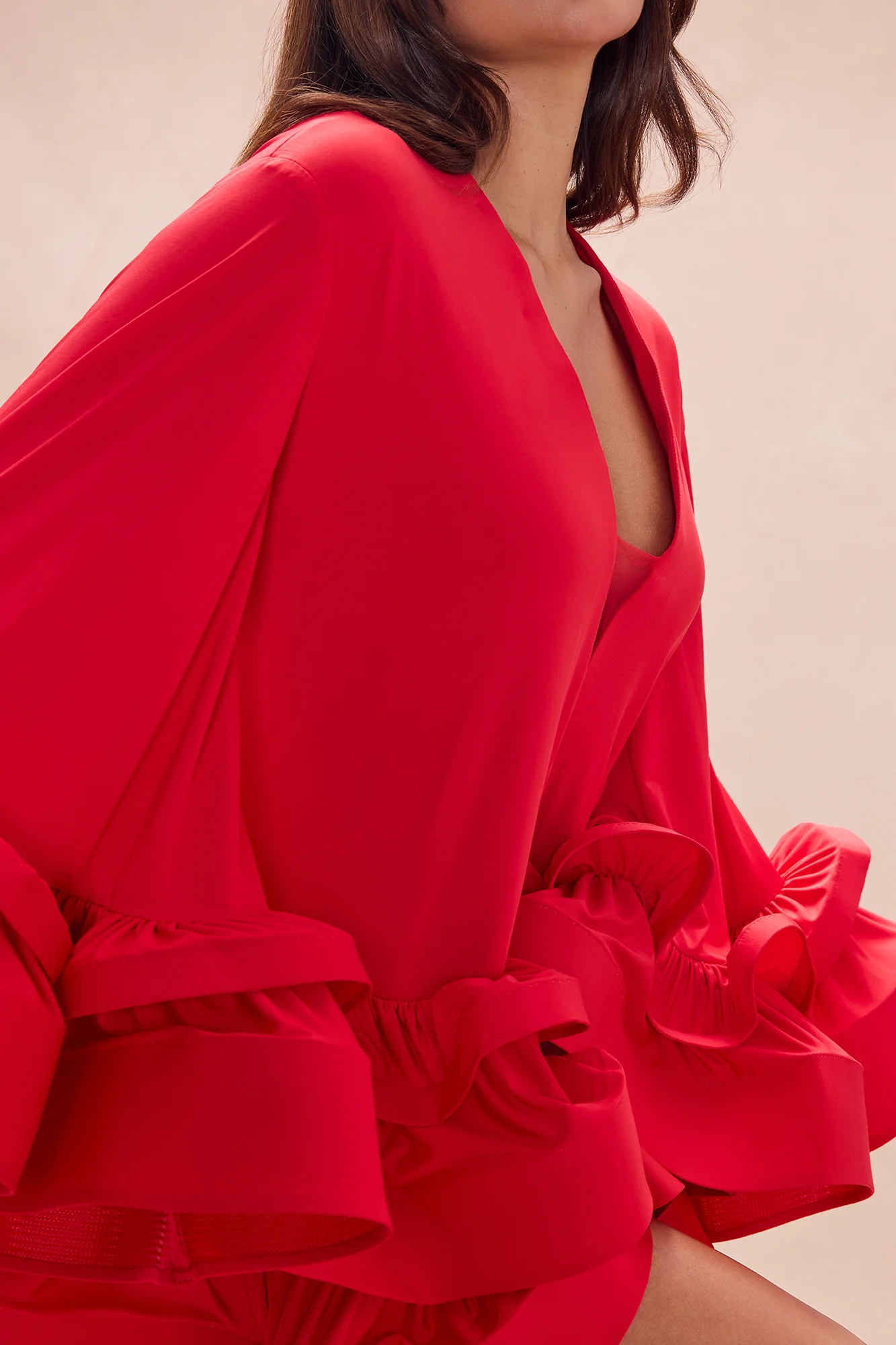 -70%Cherry On Top Ruffle Mini Dress - Red—