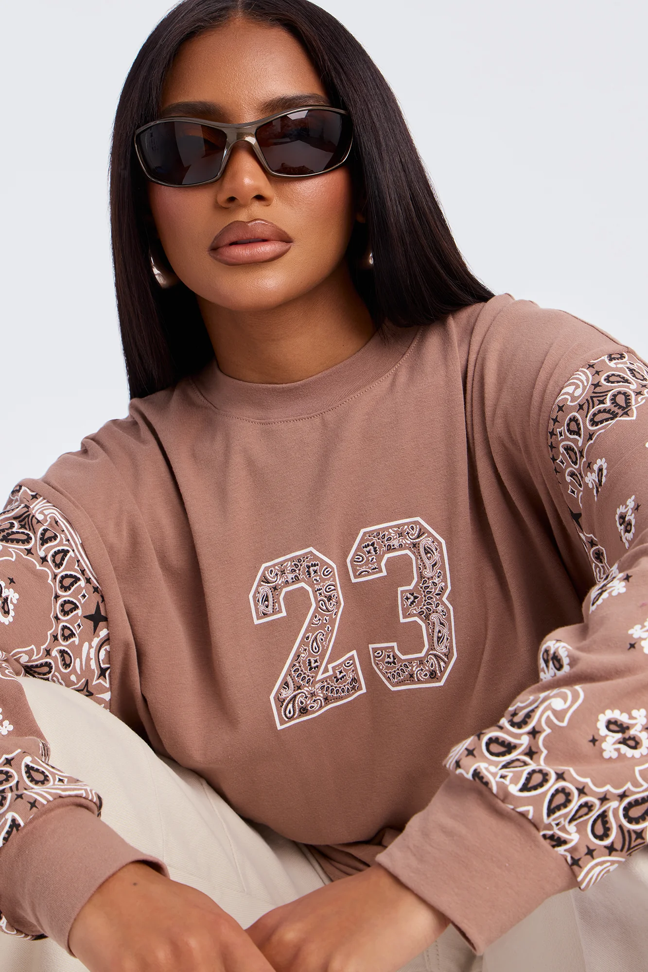 Game Day Bandana Long Sleeve Crew Neck - Mocha