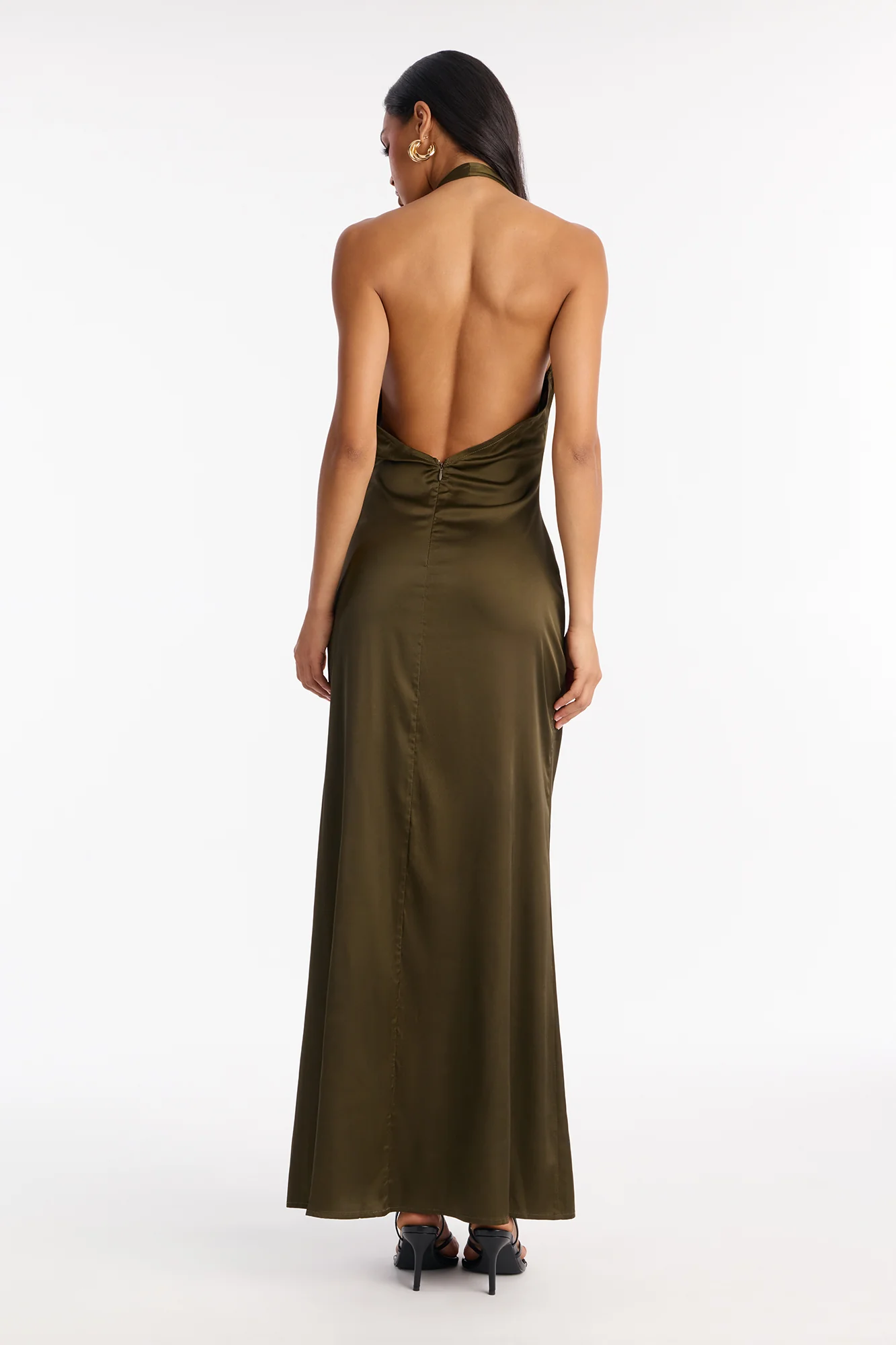 Hailie Halter Satin Maxi Dress - Olive—