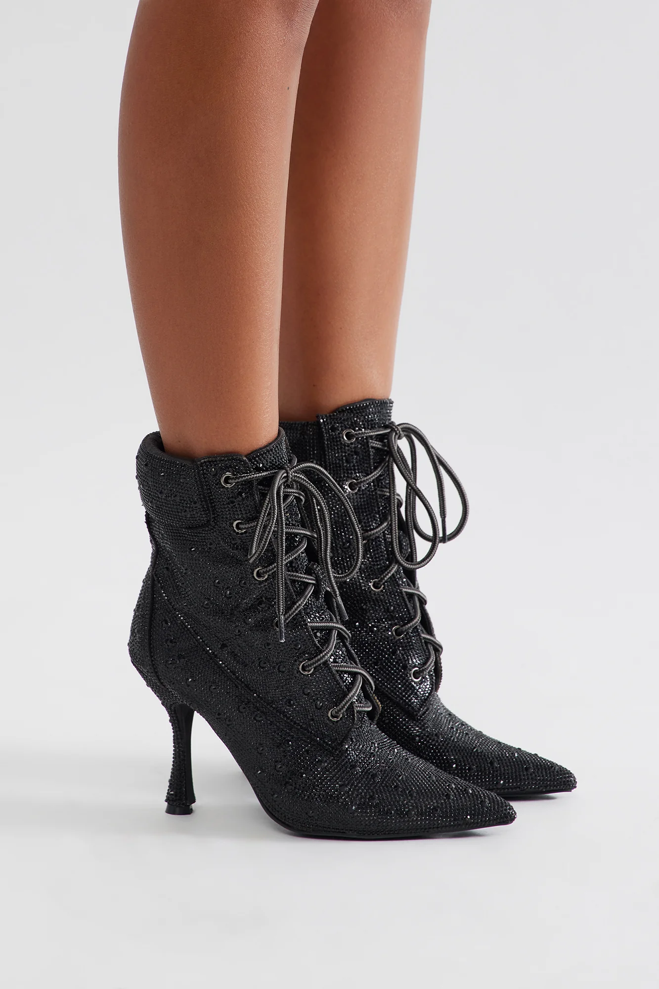 -70%Harlan Rhinestone Lace Up Booties - Black—