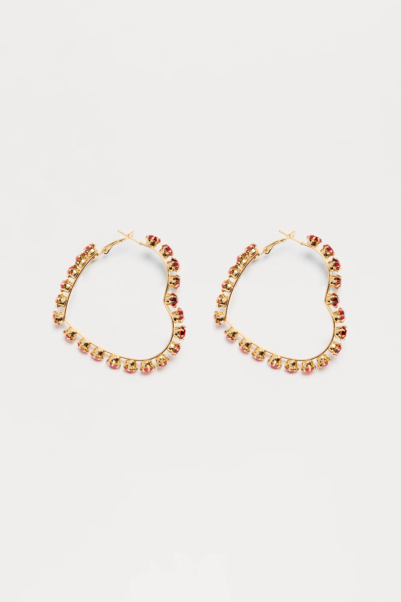 -70%Heartbreaker Rhinestone Hoop Earrings - Gold/Red—