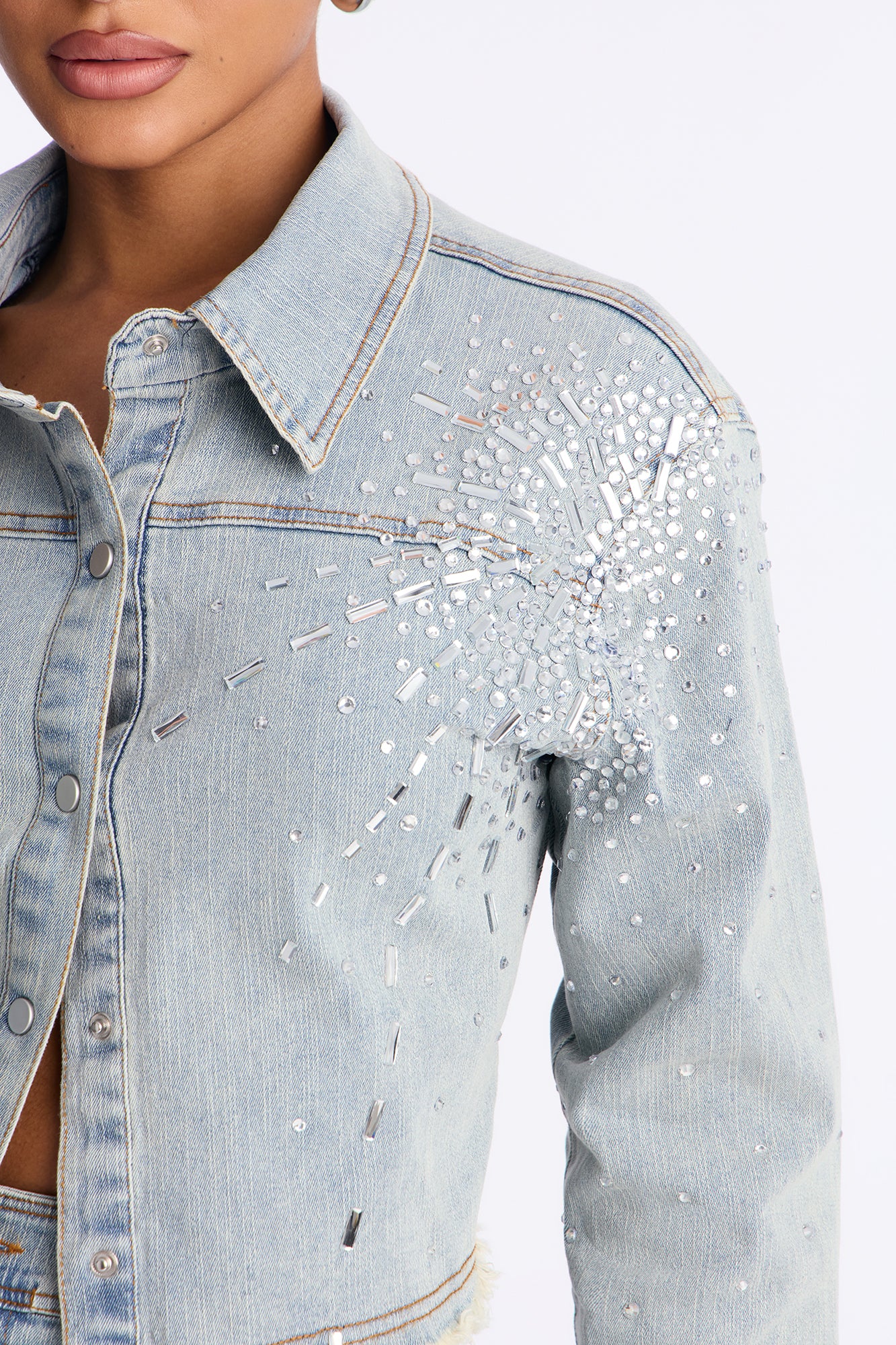 Mable Denim Rhinestone Pant Set - Medium Wash