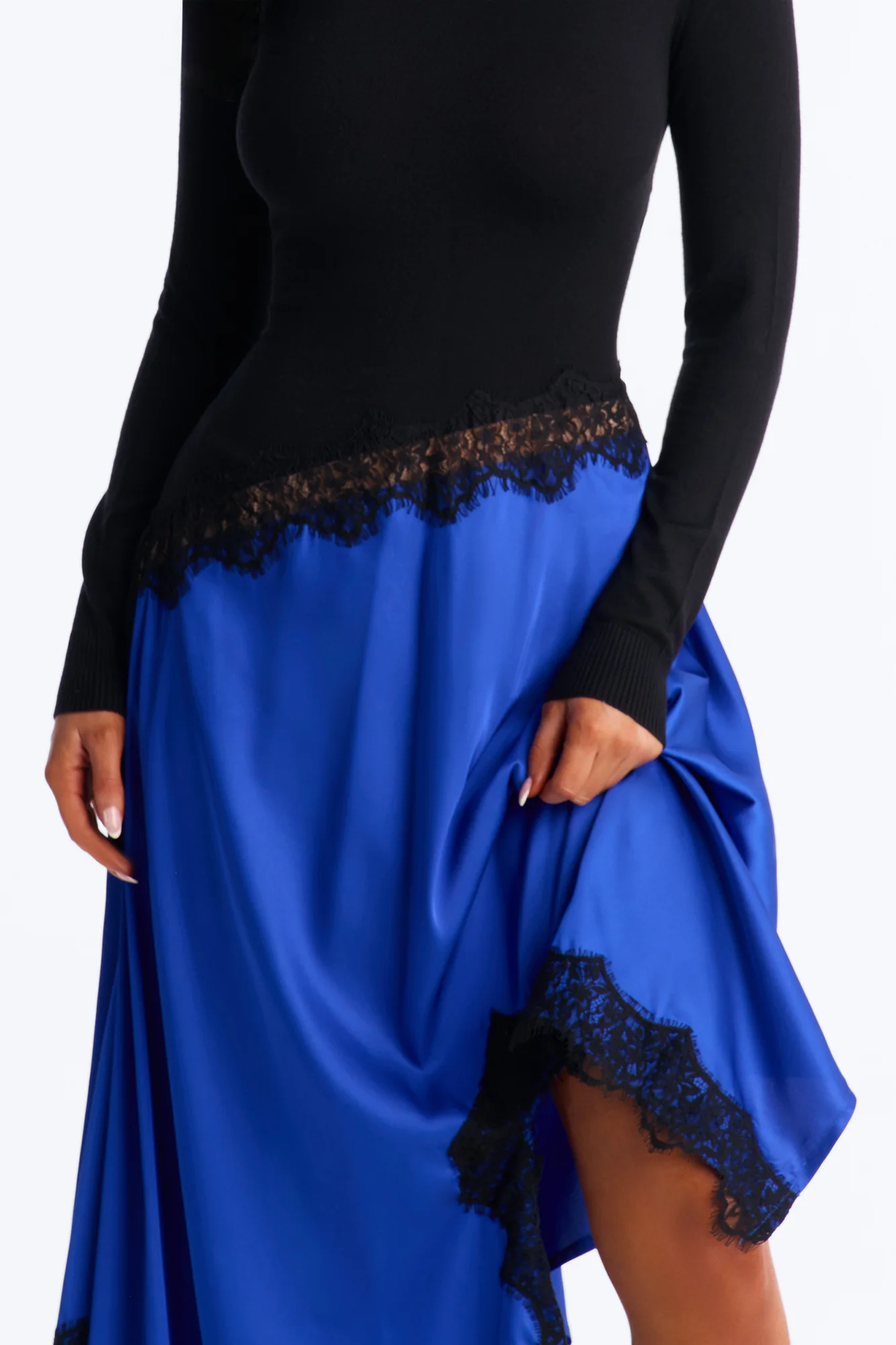 Marielle Lace Trim Maxi Dress - Black/Blue