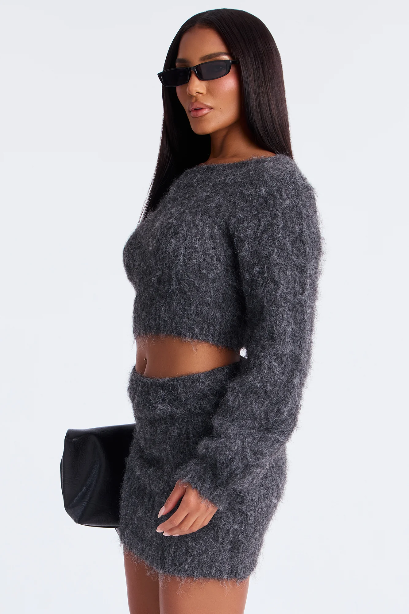 -70%Melani Cozy Sweater Skirt Set - Charcoal—
