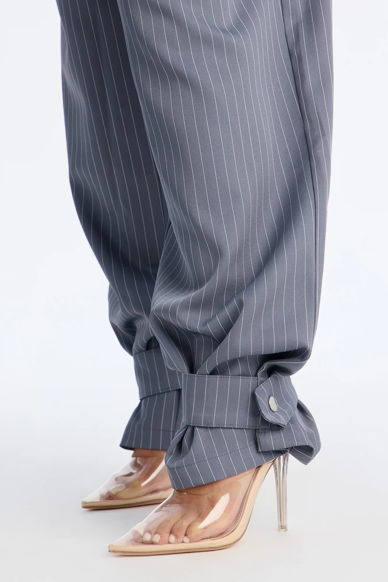 Never Settle Pinstripe Adjustable Cuff Trouser Pants 33″ - Grey