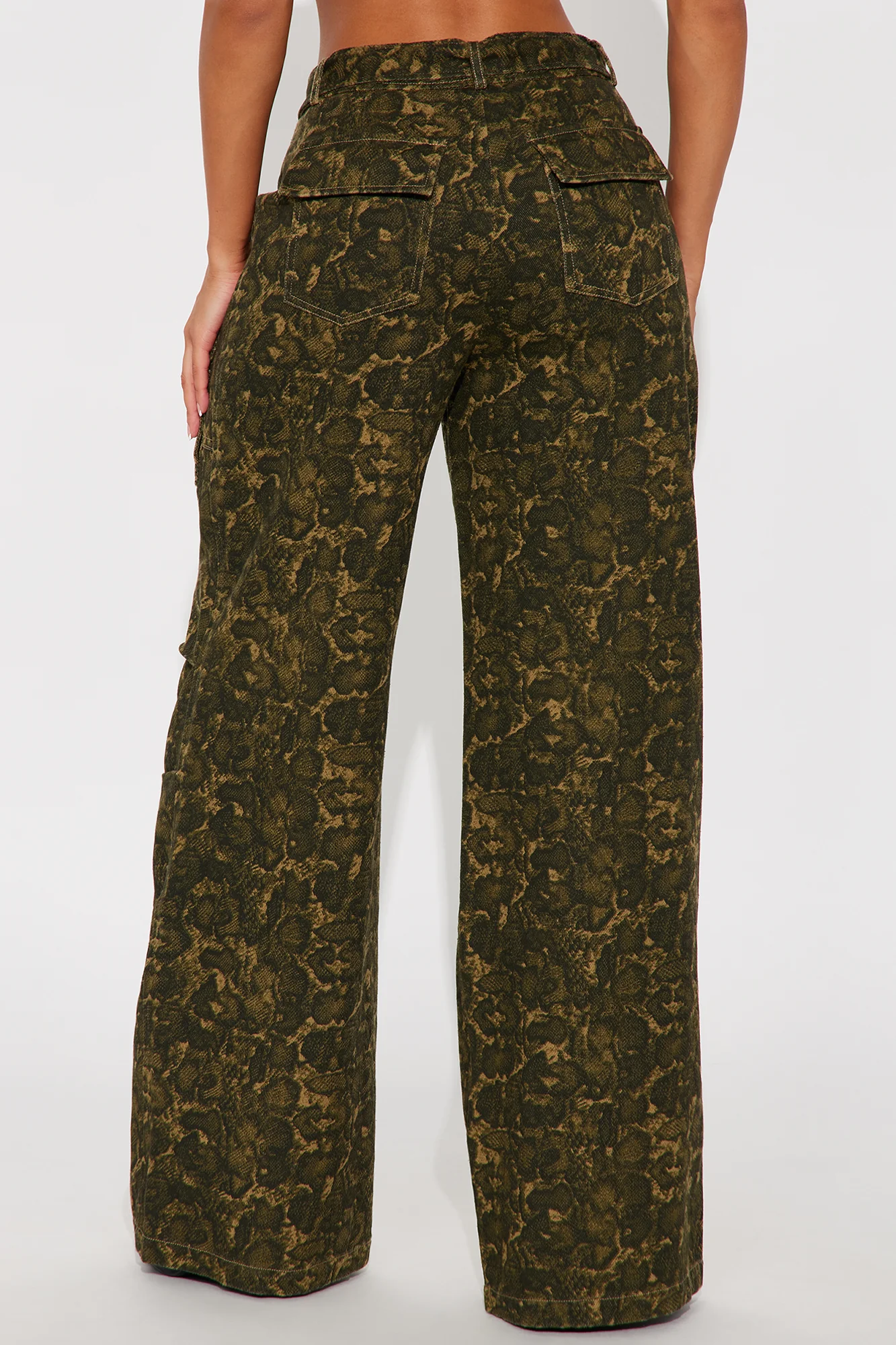 No Other Choice Twill Rigid Wide Leg Leopard Pant 32 - Leopard