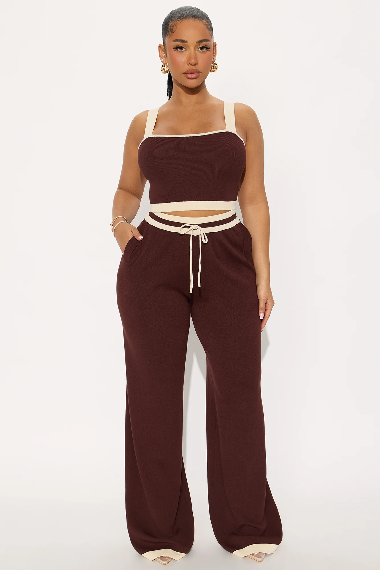 Rackell Sweater Pant Set - Brown
