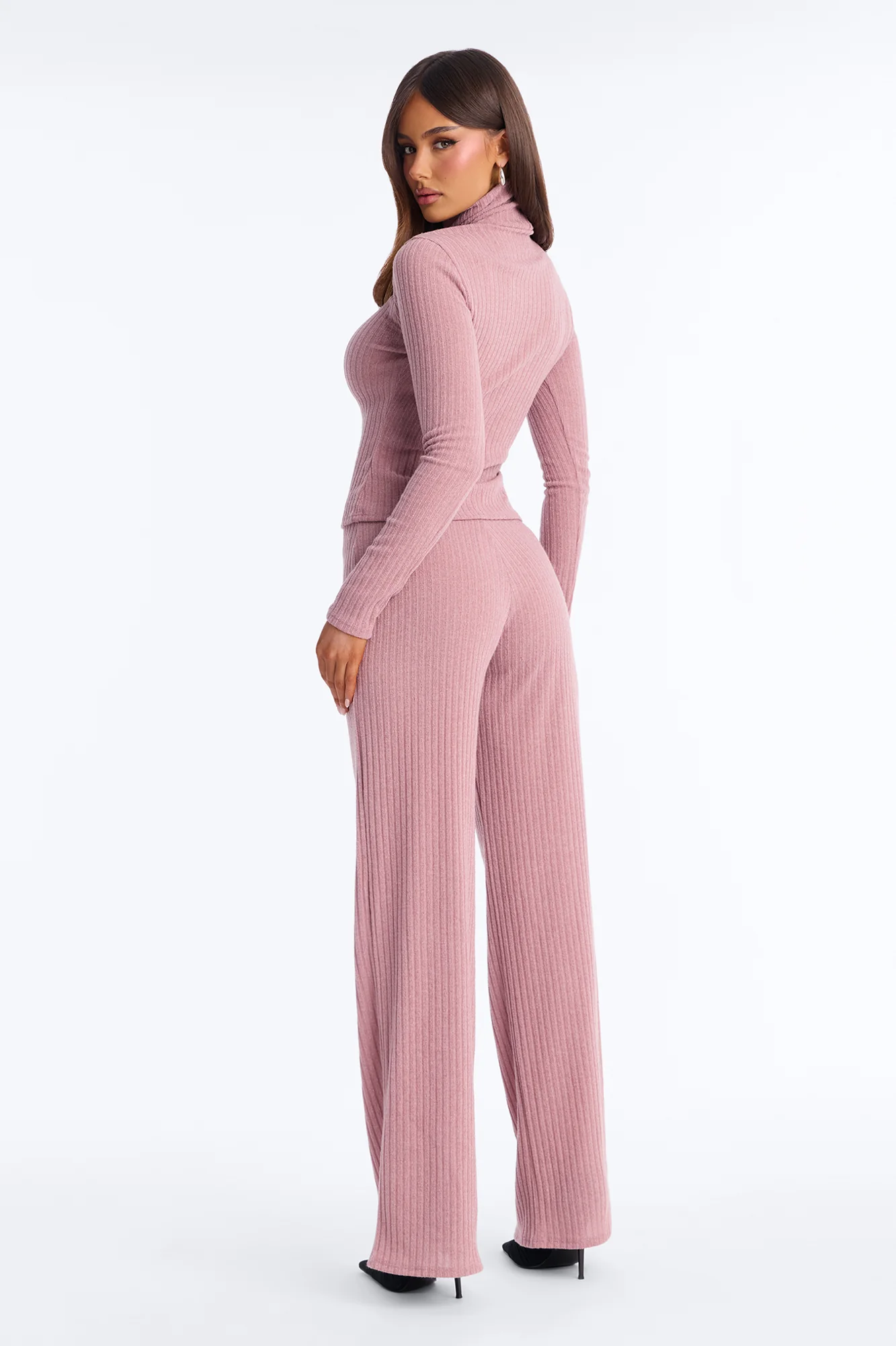 -70%Ruth High Neck Ribbed Pant Set - Mauve—
