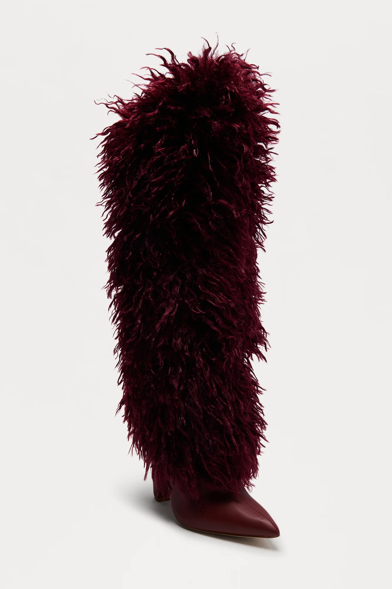 SoHo Faux Fur Overlay Boots - Burgundy