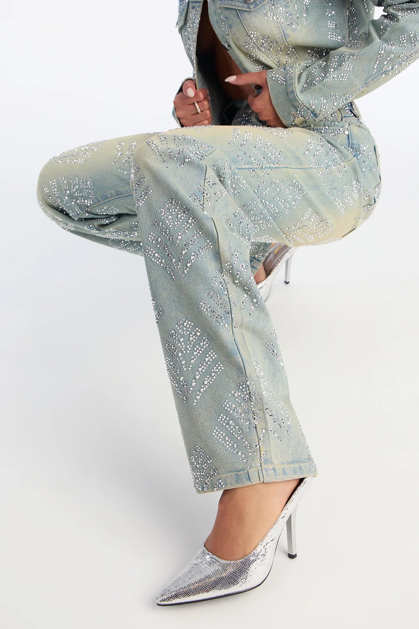 - Disclaimer: Due To The Specialized Wash and Rhinestone Placement , Each Garment Is Unique.