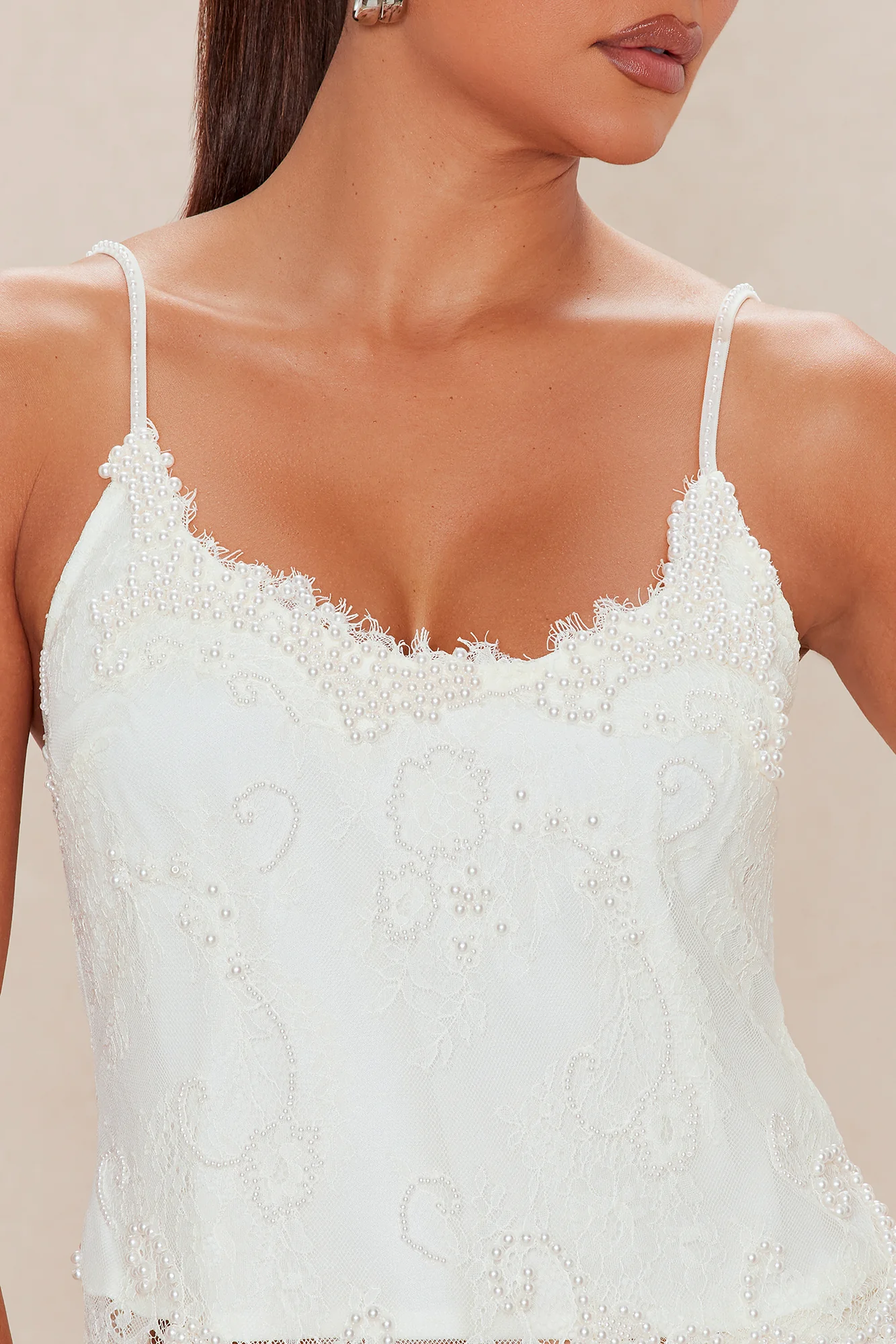 Stephanie Pearl Lace Top - Cream