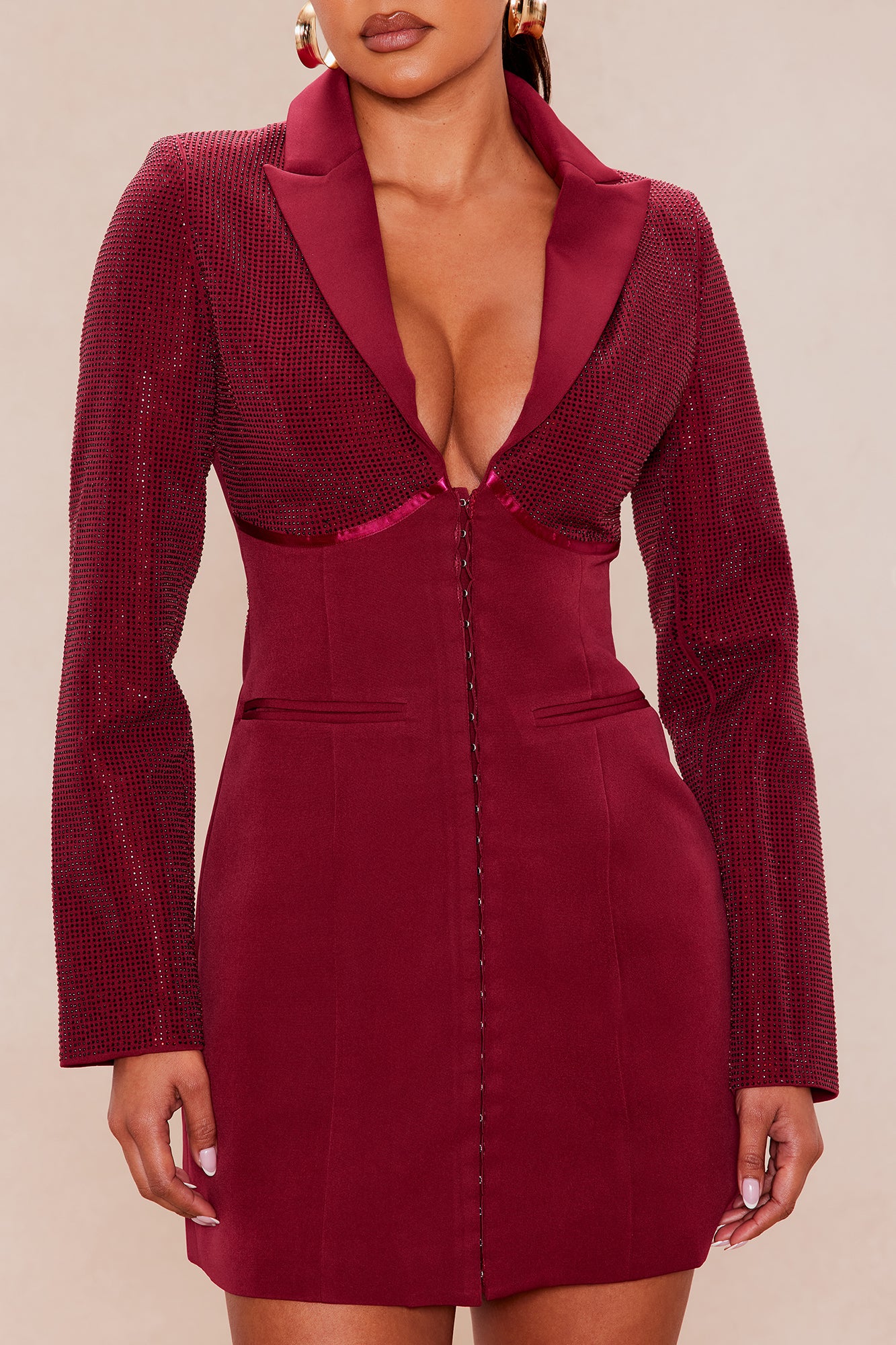 Thalia Rhinestone Blazer Mini Dress - Burgundy