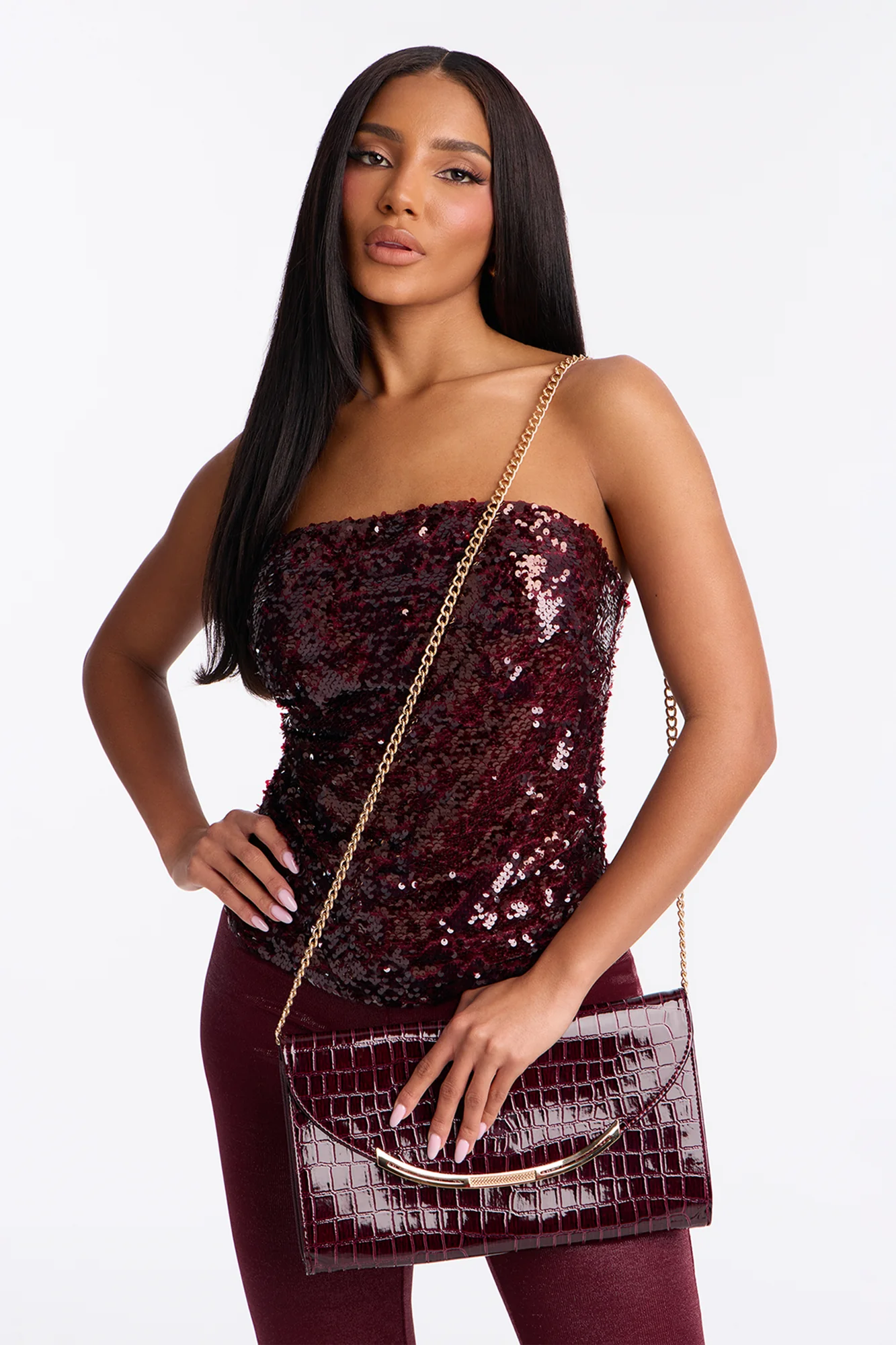 -70%The Speakeasy Faux Patent Leather Rectangle Embossed Croc Clutch - Plum—