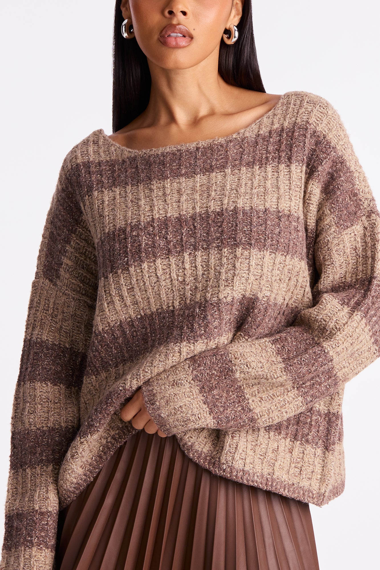 There She Is Striped Sweater - Brown/combo