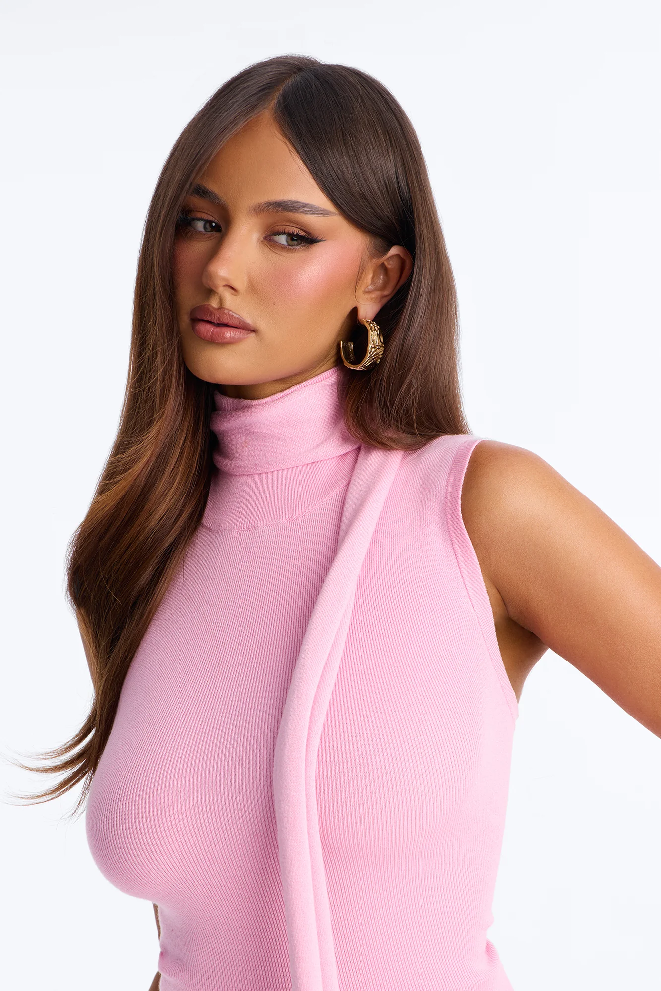 Valentina Set In Scarf Sweater Top - Pink
