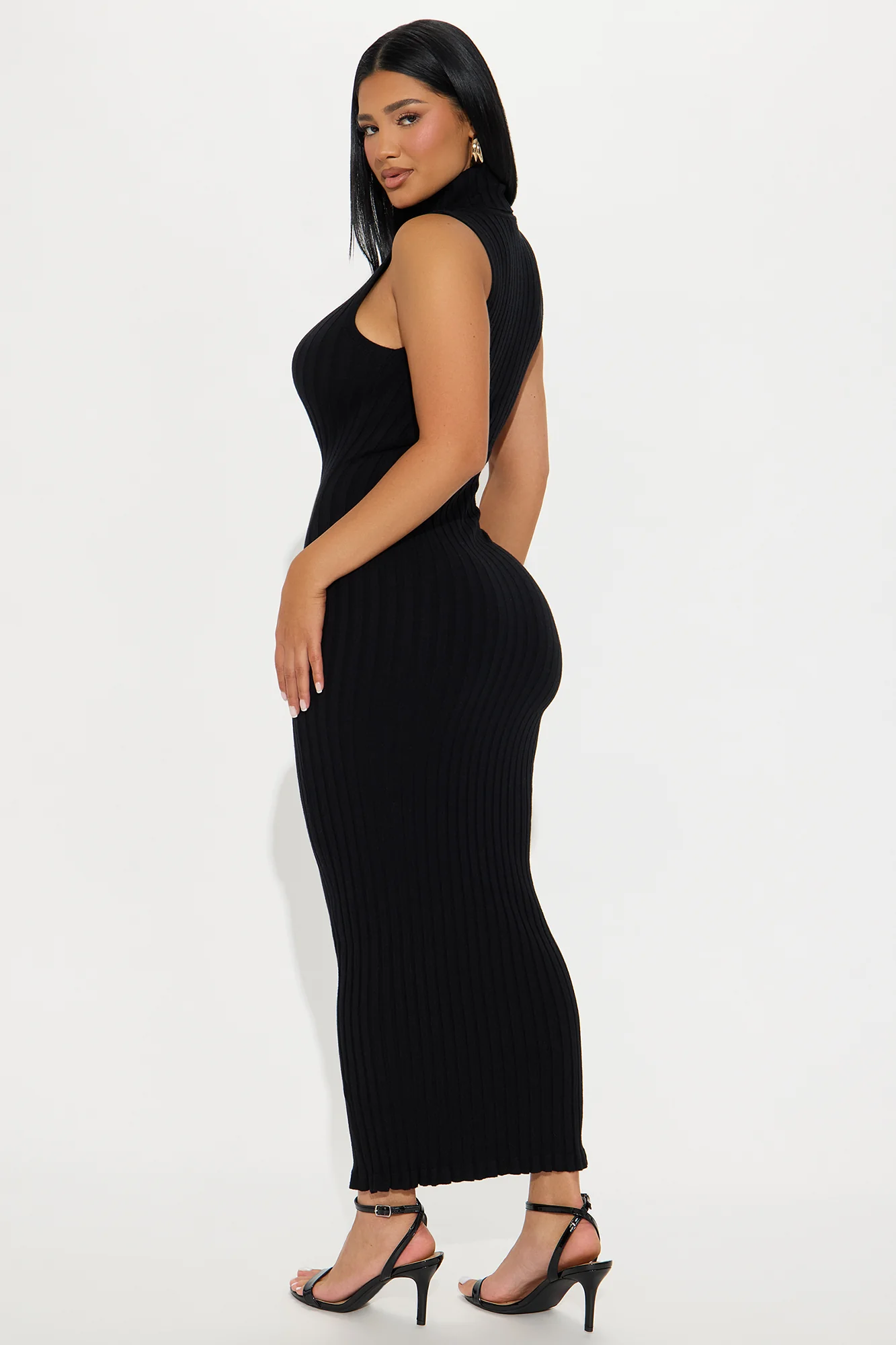 -70%Warm Promises Ribbed Maxi Dress - Black—